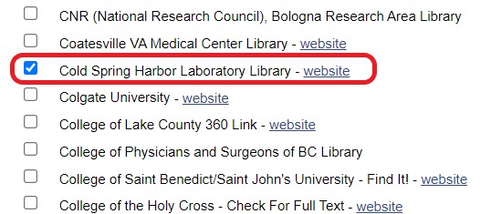 Click on the square to the left of Cold Spring Harbor Laboratory Library to select it.