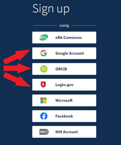 If you do not have an account with any of the 3rd party options listed, please create a free ORCID ID at orchid.org.