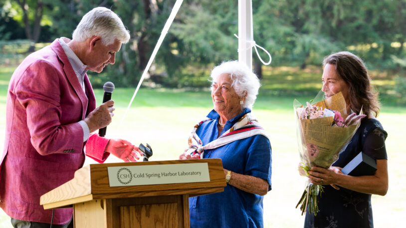 The 2022 luncheon honored Edith Seligson, a longtime benefactor of CSHL. Edith and her late husband Alan have been dedicated to supporting genetic-level cancer research, including the initiation of CSHL’s Clinical Fellows Program and the founding of the Andrew Seligson Cancer Research Fund. CSHL President Bruce Stillman thanked Edith for her partnership, for her support, and especially for her friendship.