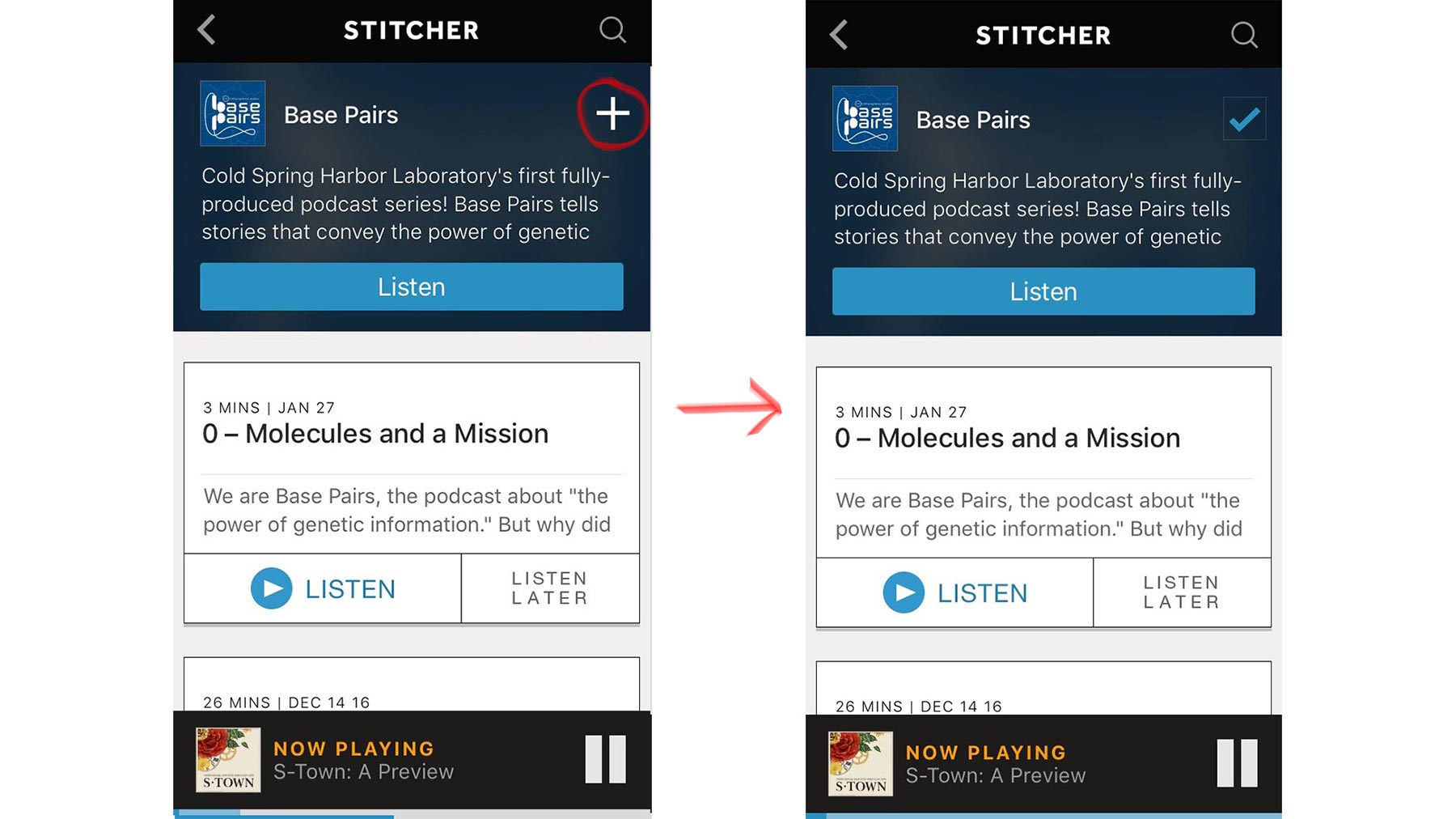 4. Tap the Base Pairs icon and tap the “+” in the top right corner to add Base Pairs to your “Favorites Playlist”
