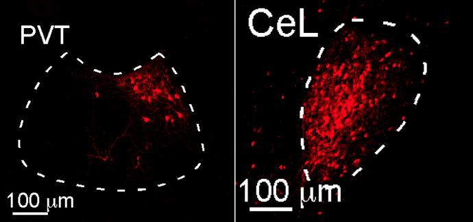 As described in work published today in Nature, the researchers looked to see if the PVT plays a role in fear learning and memory in mice. “We found that the PVT is specifically activated as animals learn to fear or as they recall fear memories,” says Li. The team was able to see that neurons from the PVT extend deep into the central amygdala. Disrupting the connection significantly impaired fear learning.