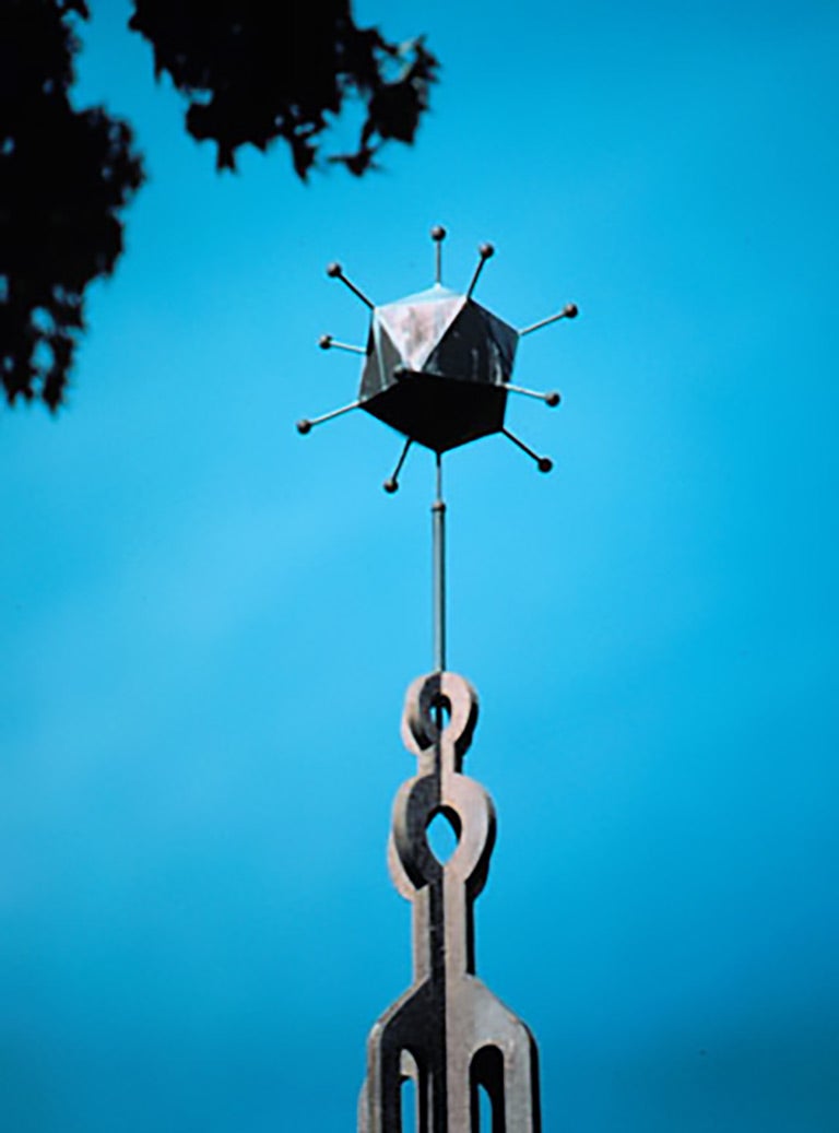 Adenovirus actually got its start at CSHL as a system for studying cancer. Along with a monkey tumor virus called SV40, it was used extensively in early “Cancer War” research and led to a number of important discoveries in the cancer field. It was these discoveries that spurred the creation of the adenovirus model that still adorns the gazebo on top of CSHL’s Water Treatment Plant. Elizabeth Watson wrote in her book Houses for Science: A Pictorial History of Cold Spring Harbor Laboratory that, “When the little copper model of an adenovirus was placed on top of the gazebo in 1976 no one at the Laboratory would have predicted that the ongoing experiments with this virus would very soon revolutionize thinking about gene structure.”